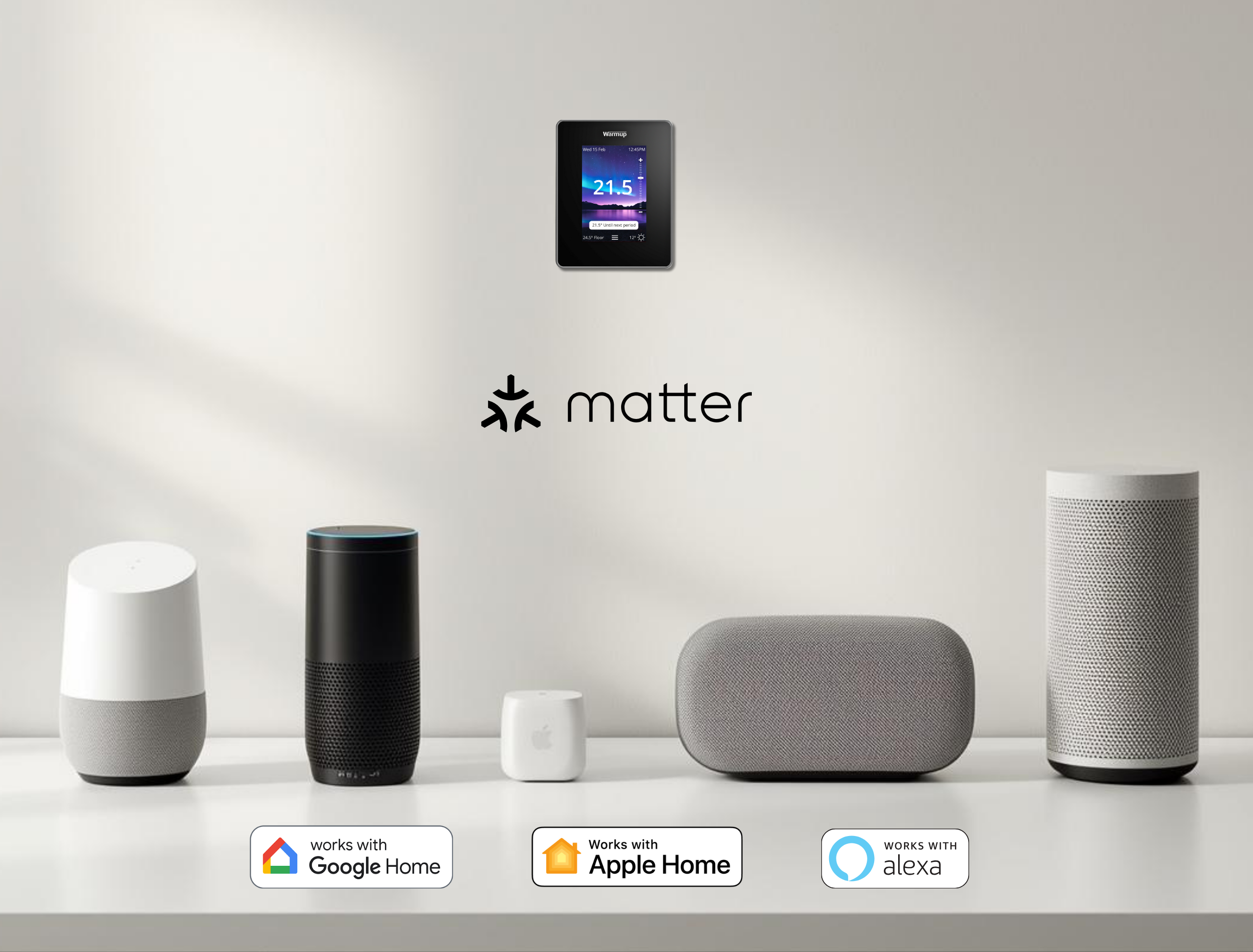 Edistynyt Matter-teknologia mahdollistaa 7iE:n integroinnin älykodin lämmitysjärjestelmään. Lämmitystä voidaan ohjata millä tahansa Matter-yhteensopivalla laitteella, mukaan lukien Apple Home, Google Home ja Amazon Alexa. Lämmitystä voi hallita äänikomennoilla tai automatisoiduilla rutiineilla yhdeltä alustalta, mikä tekee käytöstä sujuvaa.